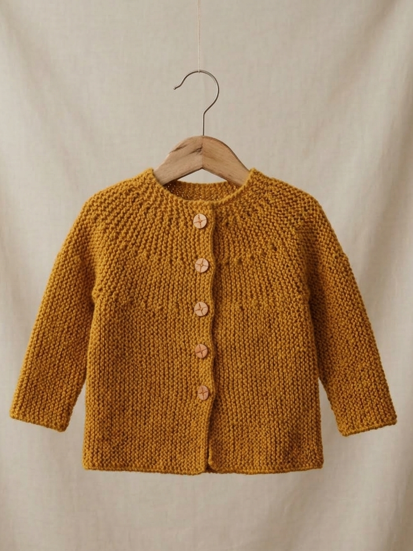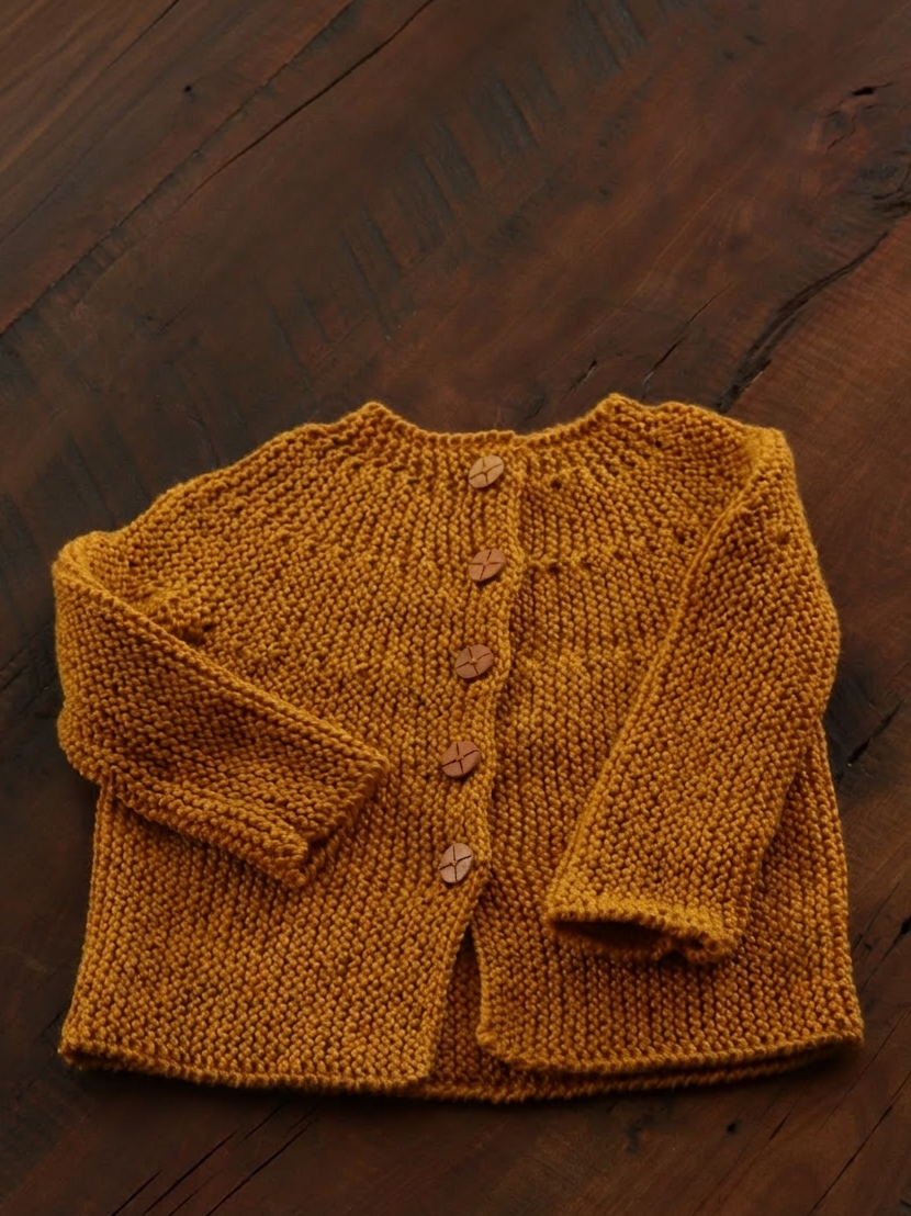 Chaleco tipo chaquetón tejido a mano color mostaza$24.990