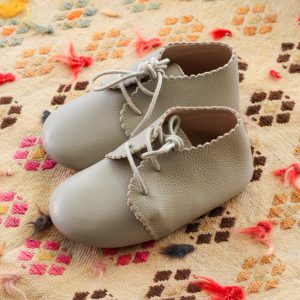 Guillermina de cuero nude. Sistema de ajuste con velcro.