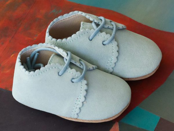Zapato para bebé 100% Cuero Celeste.